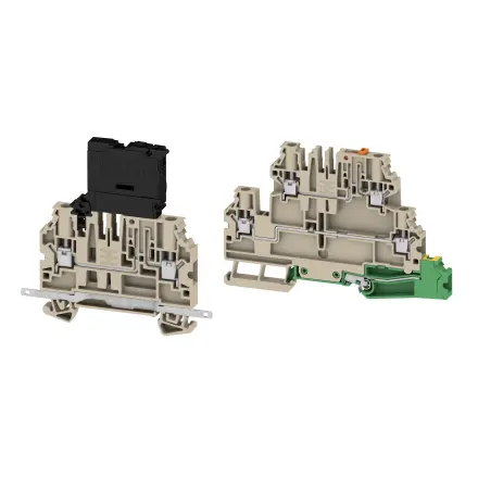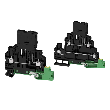 The single- and double-level terminal blocks are also available with an integrated PE contact on the DIN rail to enable reliable shielding of incoming field cables. This saves space in the control cabinet.