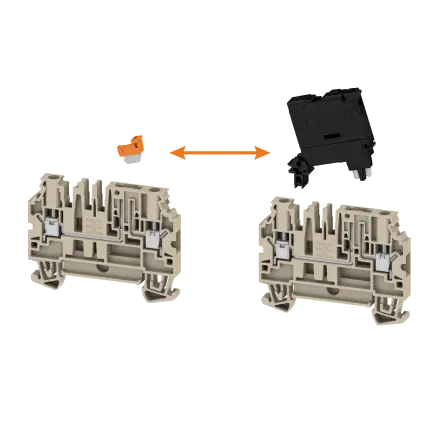 Disconnect and fuse terminal blocks allow easy change of functions by replacing the disconnect lever with a fuse holder, or vice versa. This means that even short-term changes in control cabinets are possible – without affecting the existing wiring.