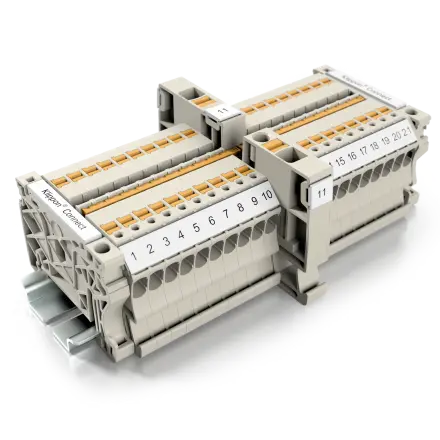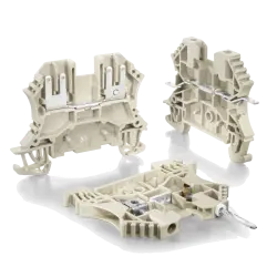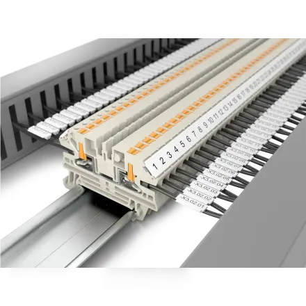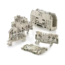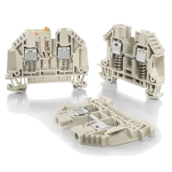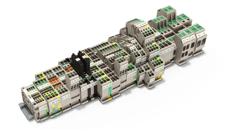 Conducting power, signals and data is the classic requirement in electrical engineering and control cabinet building / switchgear construction. The relevant characteristics are the cross-section (rated cross-section), the insulating material, the connection technology, the type of mounting (for DIN rail or direct mounting on the mounting plate) and the design of the terminals such as the thru terminal block (in the colors grey, blue, green, orange, red, yellow, dark beige, etc.), the protective earth terminal block (ground in green-yellow) or also fuse terminal blocks (black).